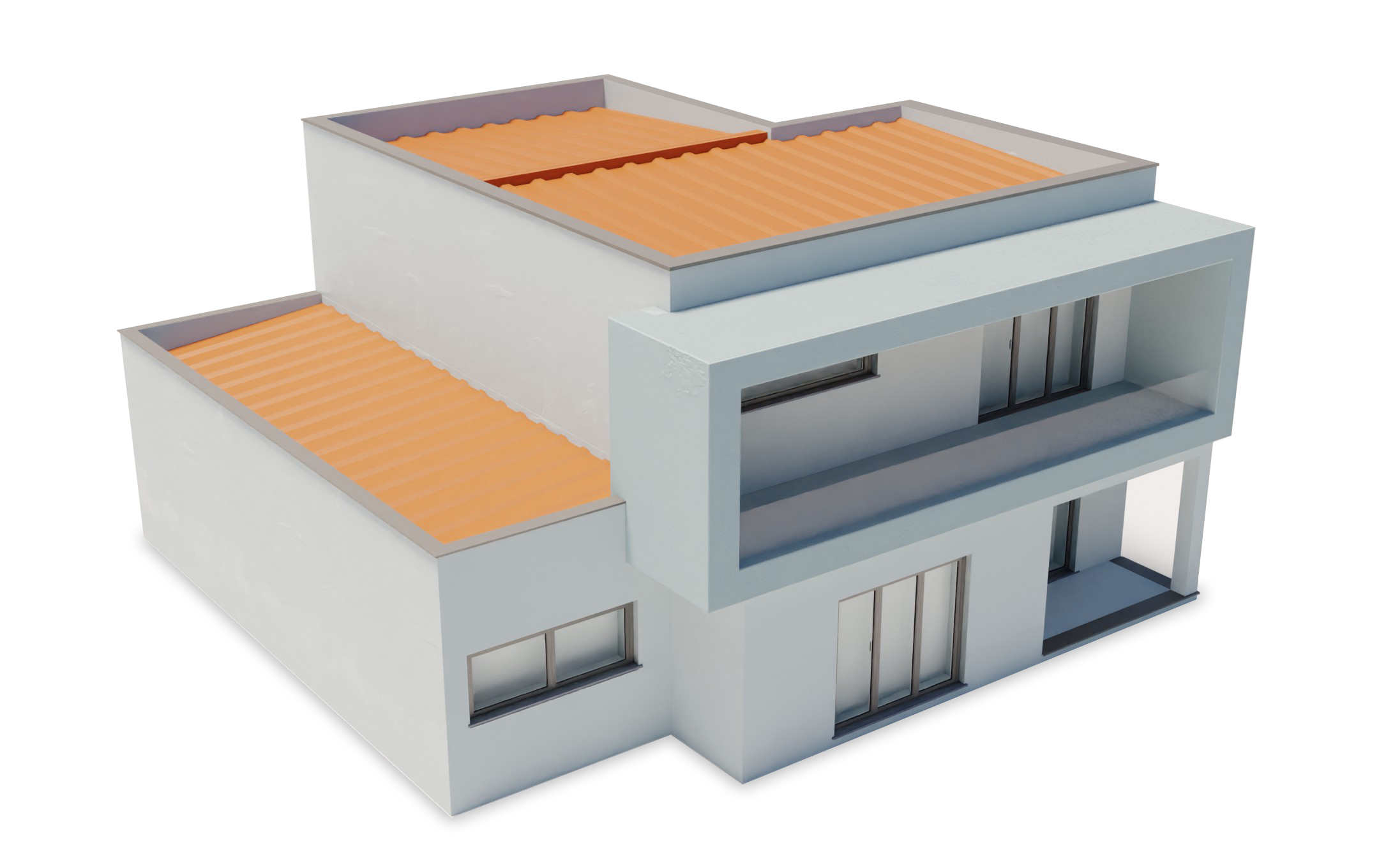Materials and Textures: To achieve a photorealistic look, physically based rendering (PBR) materials are applied to every surface. This includes the light blue paint on the house, the stone texture of the wall, and the pavers on the driveway. PBR textures use a set of maps (like color, roughness, and normal maps) to define how light interacts with the material, which creates a sense of depth and detail.